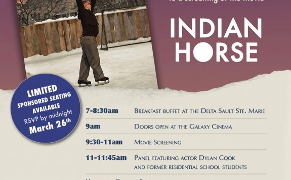 The Anishinaabe People’s Council of Algoma University will be hosting a private screening of critically-acclaimed movie Indian Horse at the Galaxy Cinemas, prior to the national release of the film in April. The private screening is slated for March 31st at 9:30am.